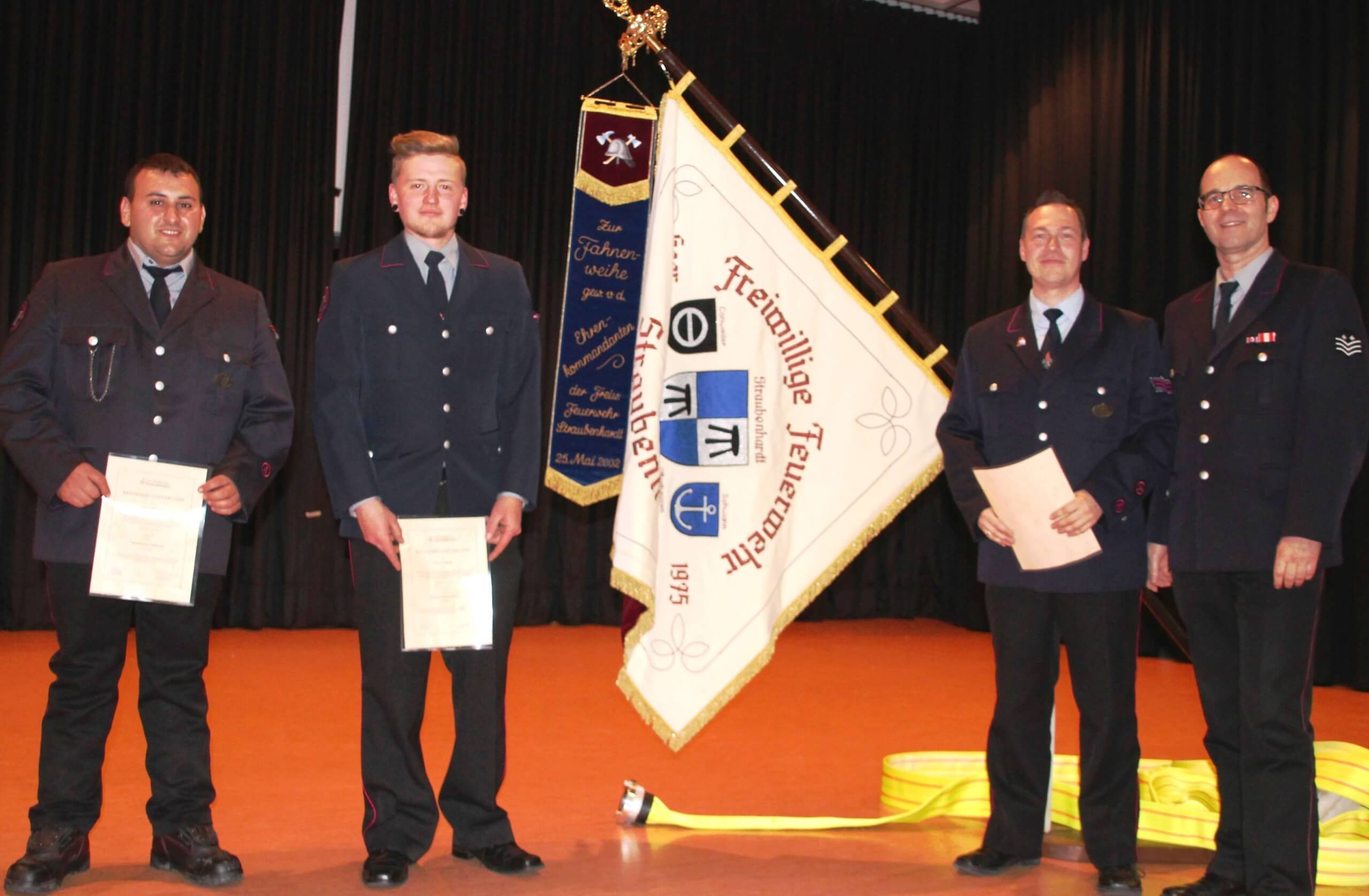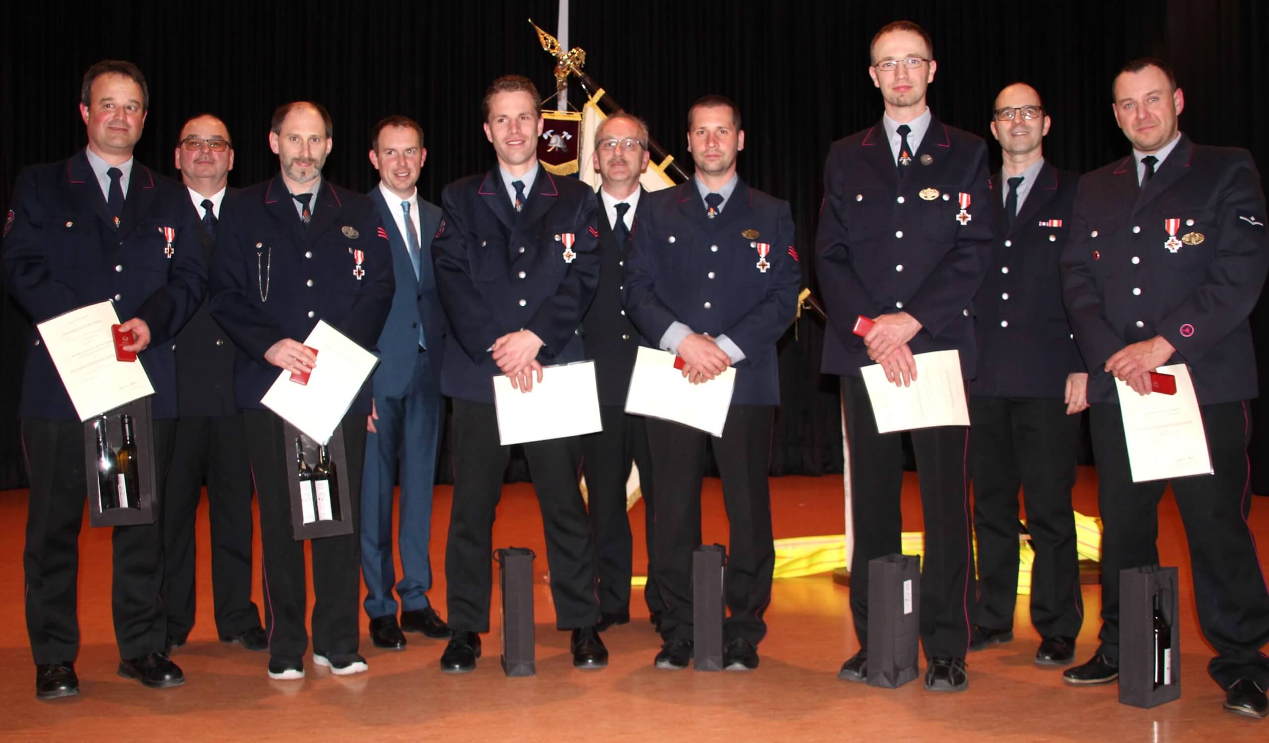 Zwei nicht alltägliche Beförderungen nahm Kommandant Irion persönlich vor: Ulrich Keppler, Conweiler‘ Abteilungskommandant in der dritten Amtsperiode, sowie Norbert König, in Pfinzweiler nach sieben Jahren als Chef nun stellvertretender Abteilungskommandant, wurden beide zu Oberbrandmeistern befördert.