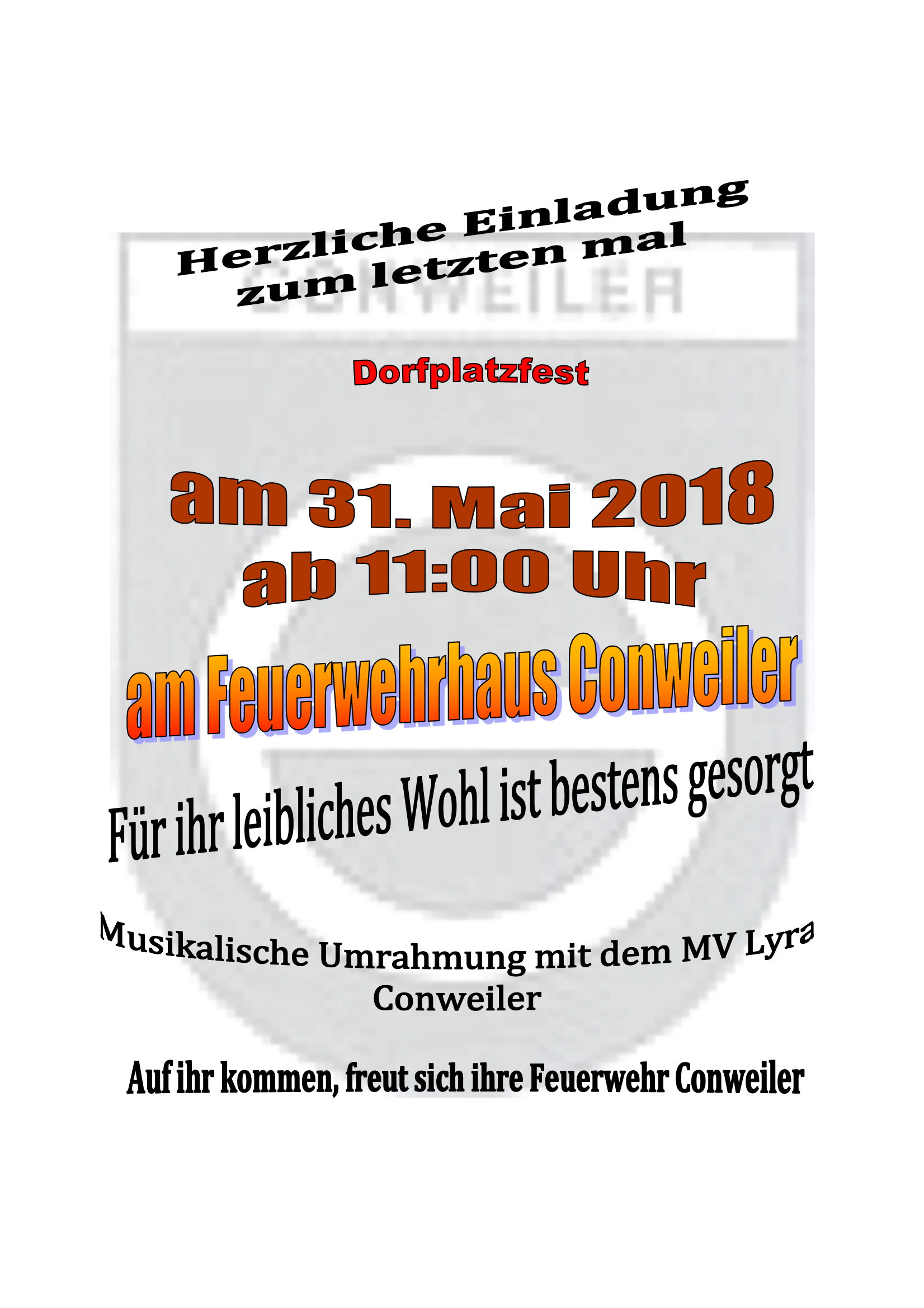 Einladung zum Dorfplatzfest der Abt. Conweiler